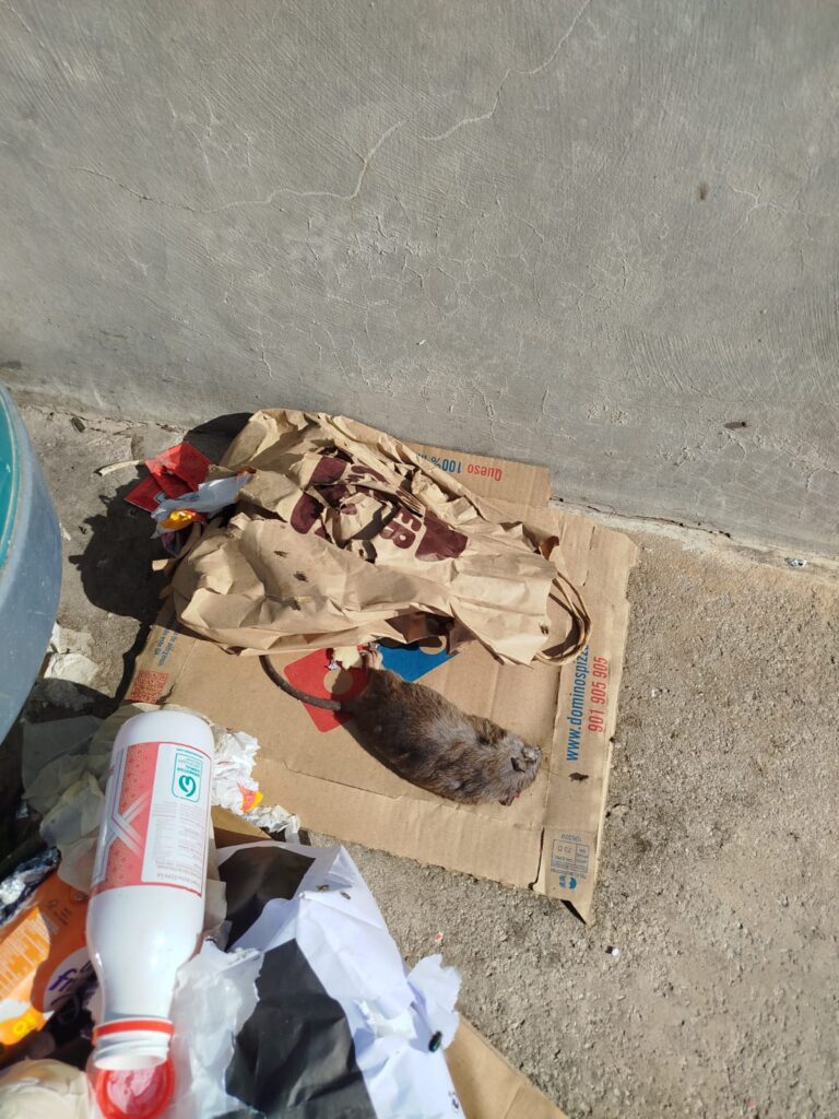 Los roedores tienen sus nidos en los alcorques de los árboles y resulta muy fácil ver ejemplares entre la basura acumulada de forma incontrolada en las papeleras