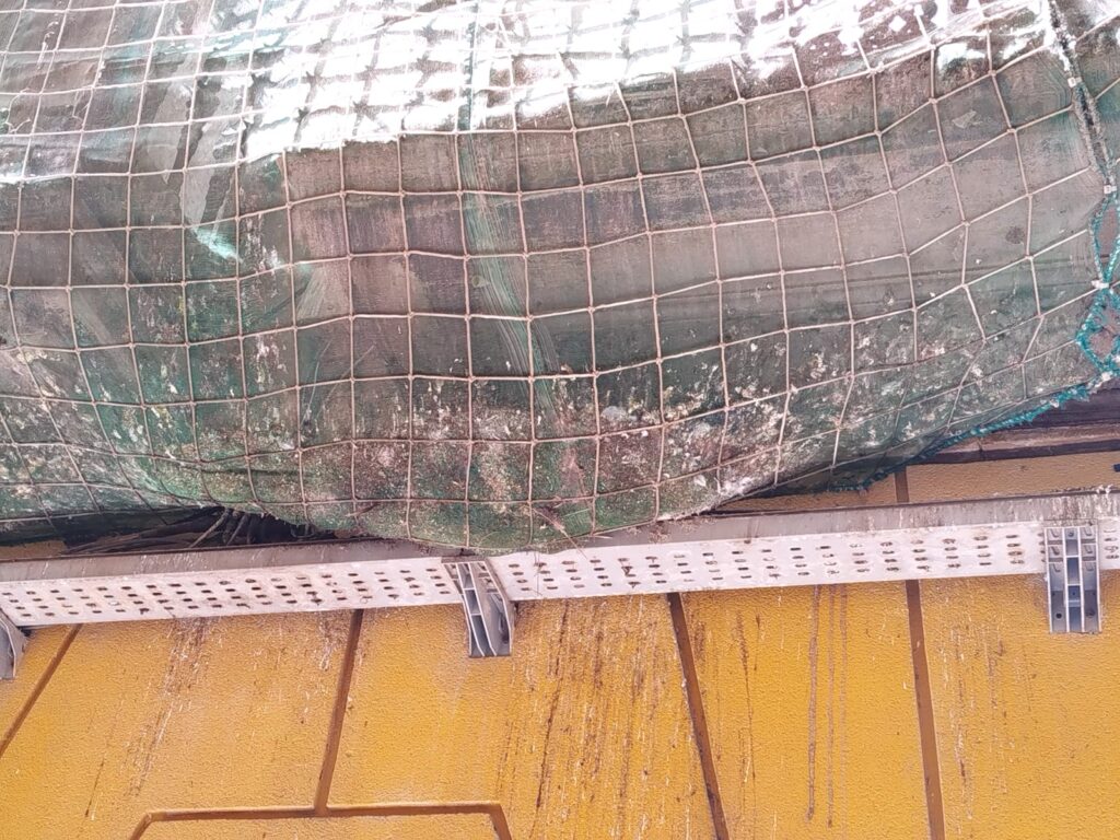 El PCAN denuncia que las lonas de la fachada del parking de la calle Cuatro Santos acumulan kilos de deposiciones de palomas que originan moscas en la vía pública