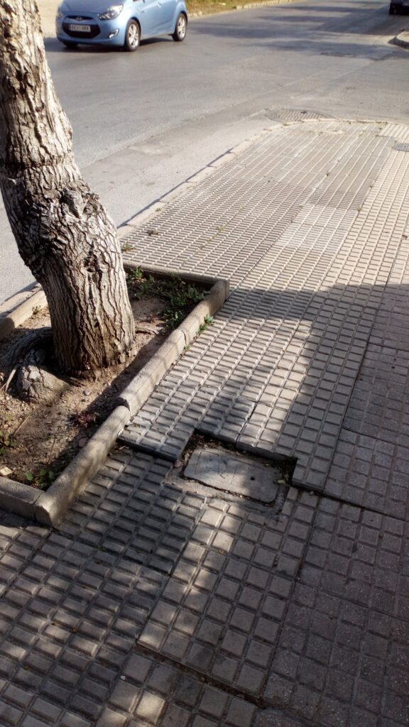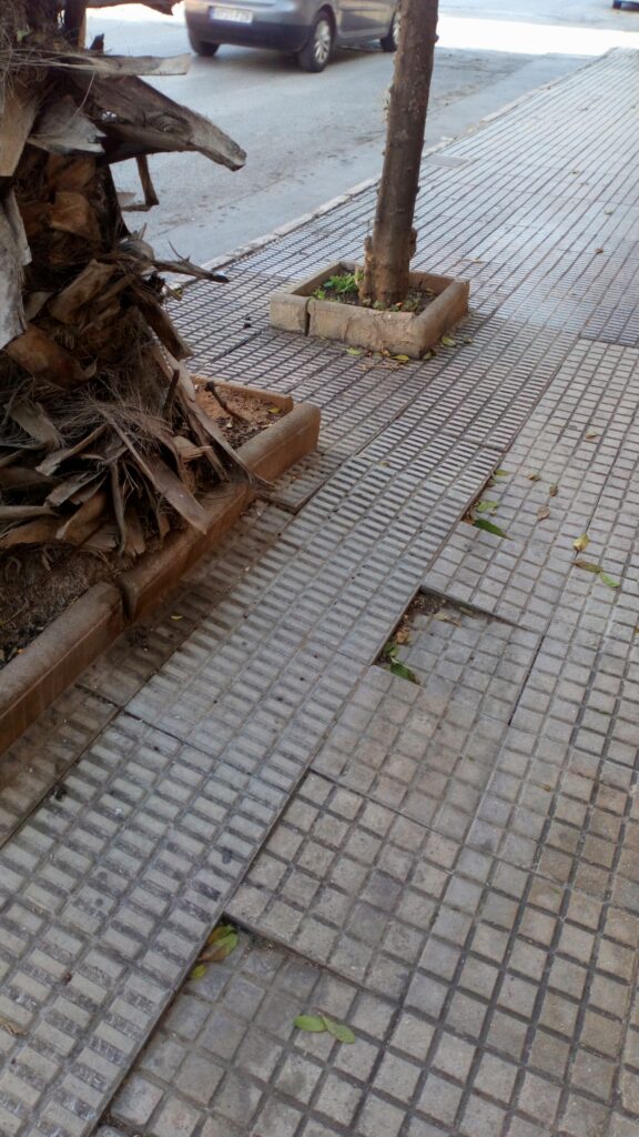 Además del pavimento hecho añicos, como en la amplia acera junto a la céntrica parada de taxis en plena calle Ramón y Cajal, destacan las losas levantadas por la fuerza de las raíces de los árboles, con el evidente peligro de caída para unos residentes que, en su mayoría, cuentan con una avanzada edad. Más sensación incluso de dejadez da la maleza que crece entre la unión de unas losas con otras fruto de lustros sin ningún tipo de mantenimiento por parte de las brigadas municipales.