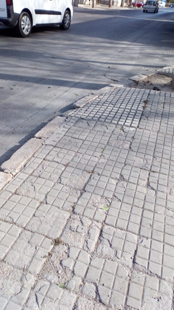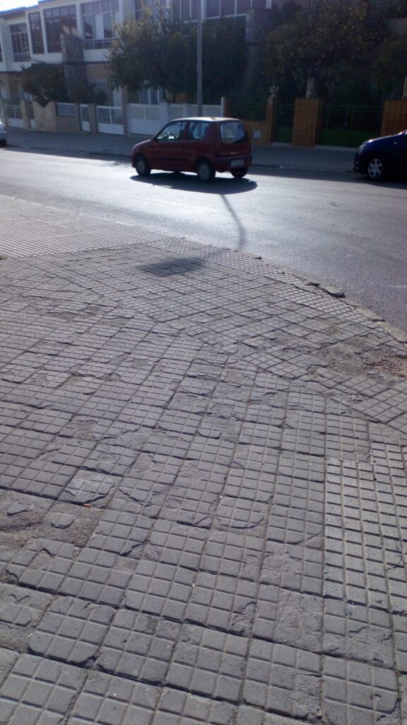 Impropias de una ciudad del siglo XXI. Las aceras de las principales arterias de la Barriada Cuatro Santos presentan un estado deplorable. Las calles más importantes como Ramón y Cajal, Lugo o Álava, donde tiene su ubicación el Local Social, muestran tramos más propios de poblaciones tercermundistas. El Partido Popular prometió el arreglo del enlosado destruido durante sus últimos cuatro años de Gobierno municipal. Mientras que las alcaldías de Movimiento Ciudadano, con José López, y Partido Socialista, con Ana Belén Castejón, tampoco han atendido las demandas de reforma de los vecinos. Los habitantes de esta populosa zona de la ciudad ya no saben a dónde acudir para que les hagan caso y asumen con resignación la dejadez de sus viales públicos.